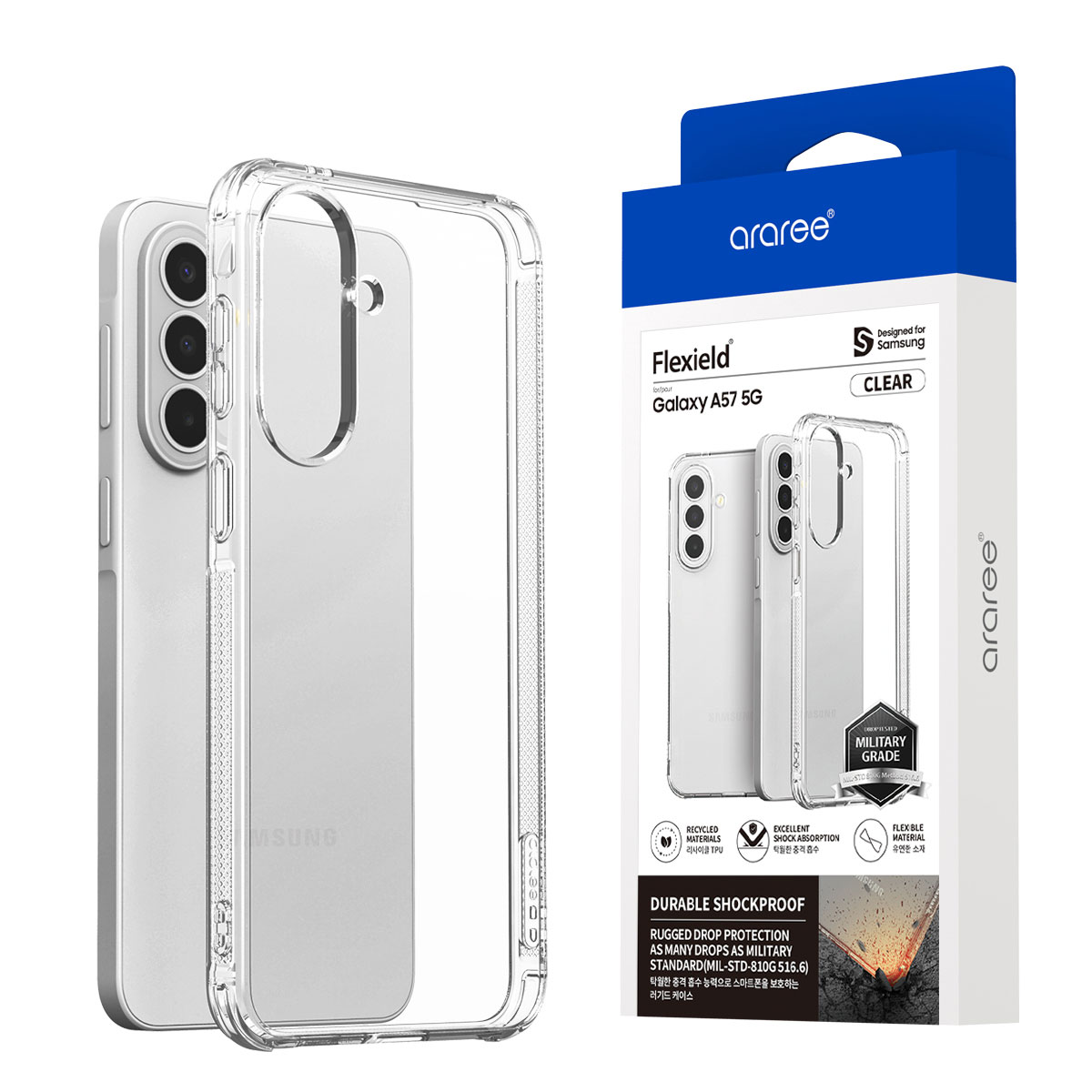 araree(アラリー)の「Flexield」は柔軟なTPU素材で衝撃を吸収し、端末を保護するソフトケースです。