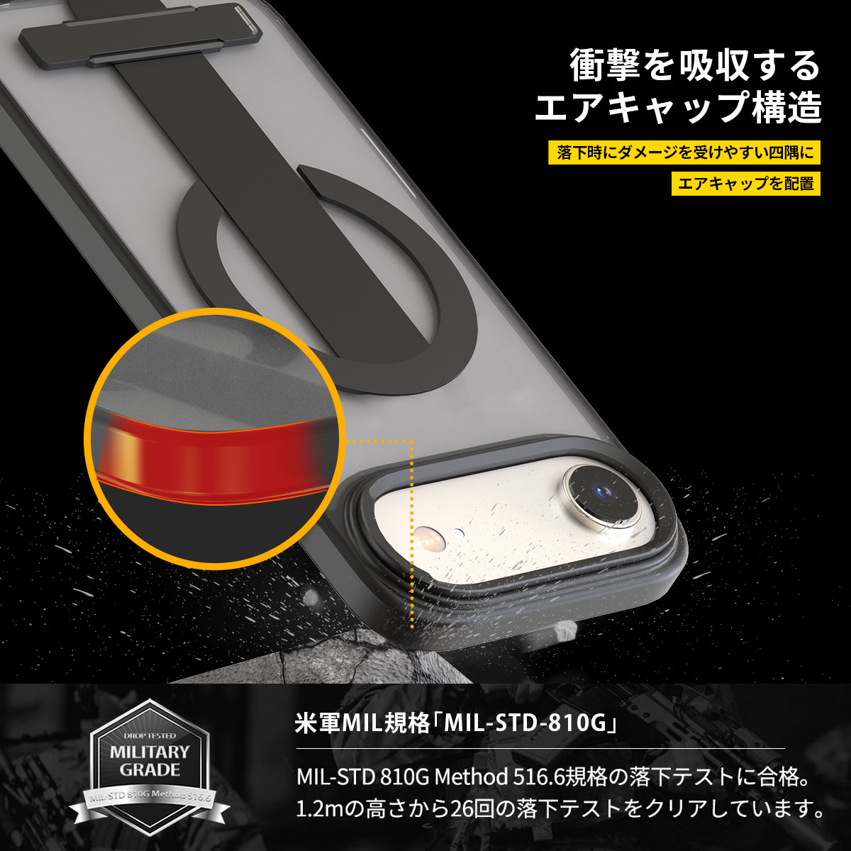 米軍MIL規格「MIL-STD-810G」に準拠した落下テストを行い、高い耐衝撃性が確認された製品です。不意の落下でも安心です。