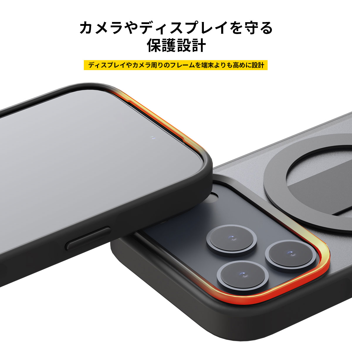 カメラホールや画面の縁を端末本体よりわずかに高く設計。床やテーブルに置いた場合でもレンズや画面が直接触れず、傷を防ぎます。