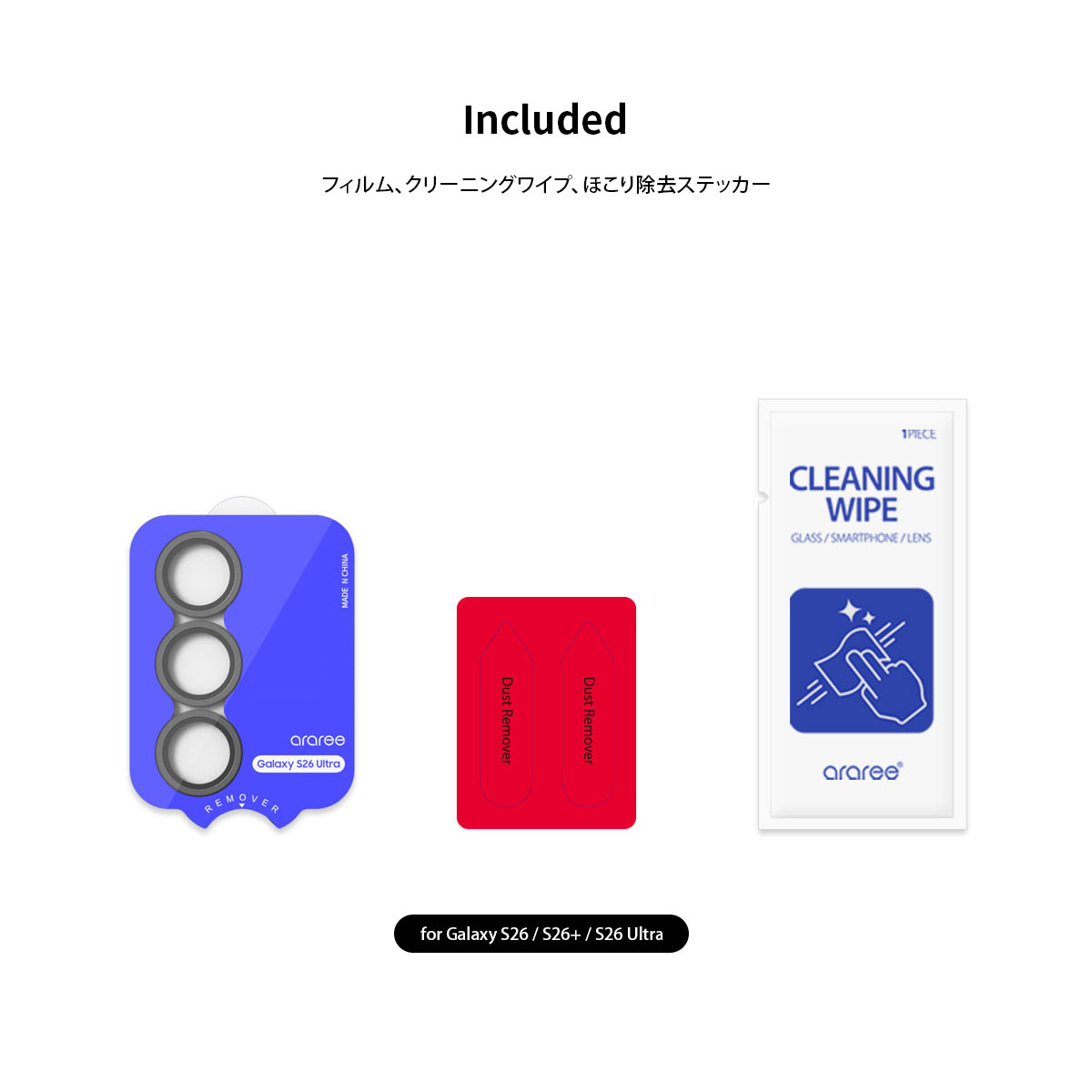 フィルム1枚、クリーニングワイプ、ほこり除去ステッカー