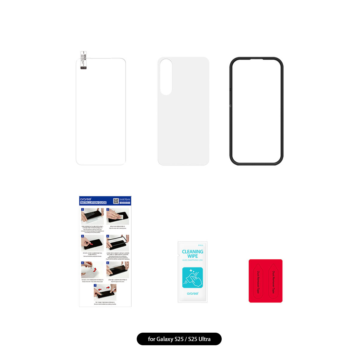 フィルム1枚、クリーニングワイプ、ほこり除去ステッカー、取り付けガイド&下敷きスポンジ、取扱説明書