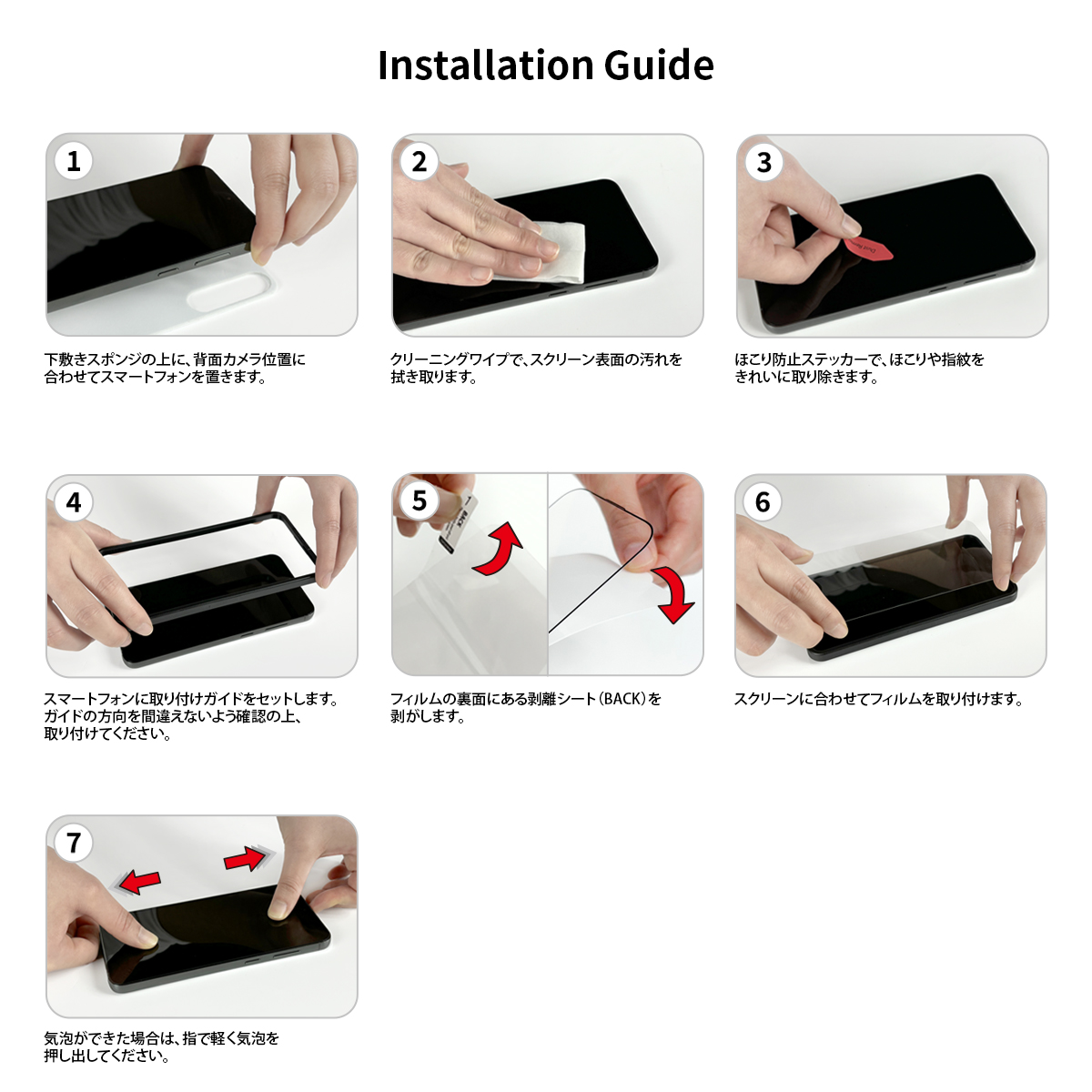 7.気泡ができた場合は、指で軽く気泡を押し出してください。