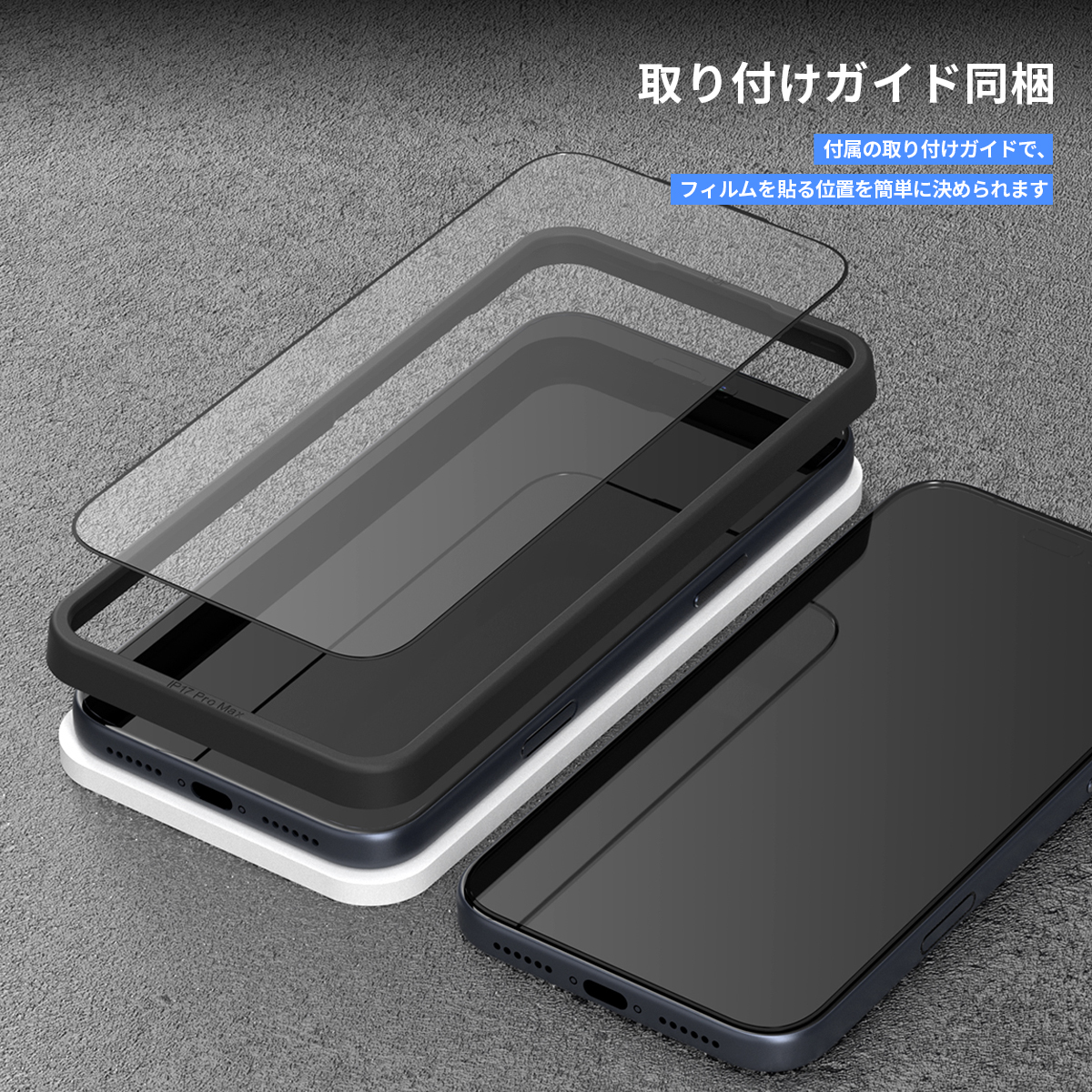 付属の取り付けガイドで、フィルムを貼る位置を簡単に決められます。初めての方でもスムーズに貼り付け可能です。