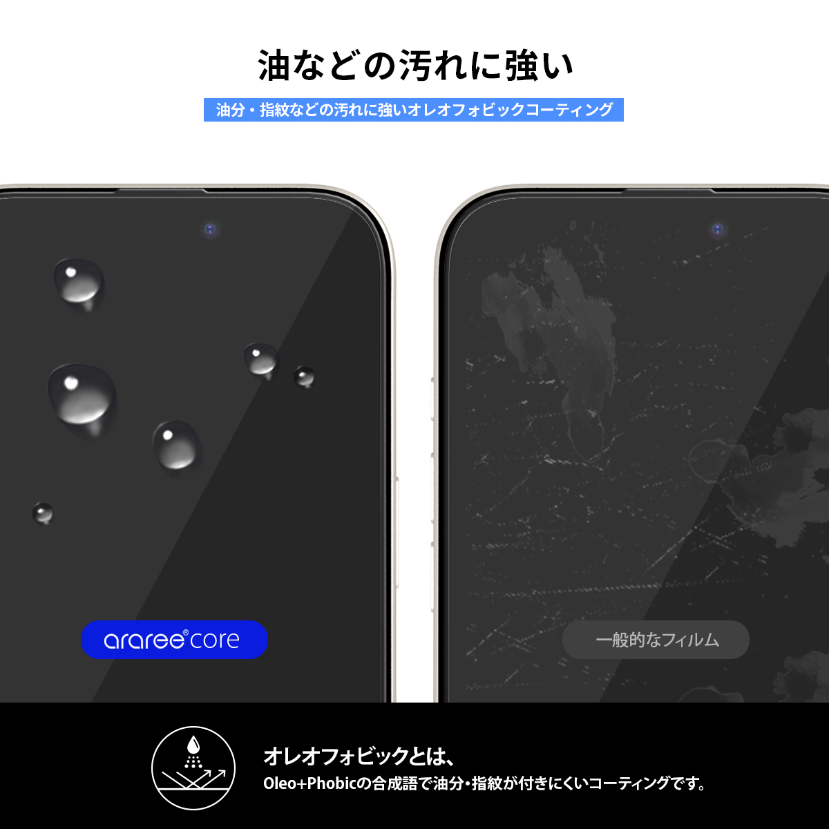 油分・指紋などの汚れに強いオレオフォビックコーティングを施しています。