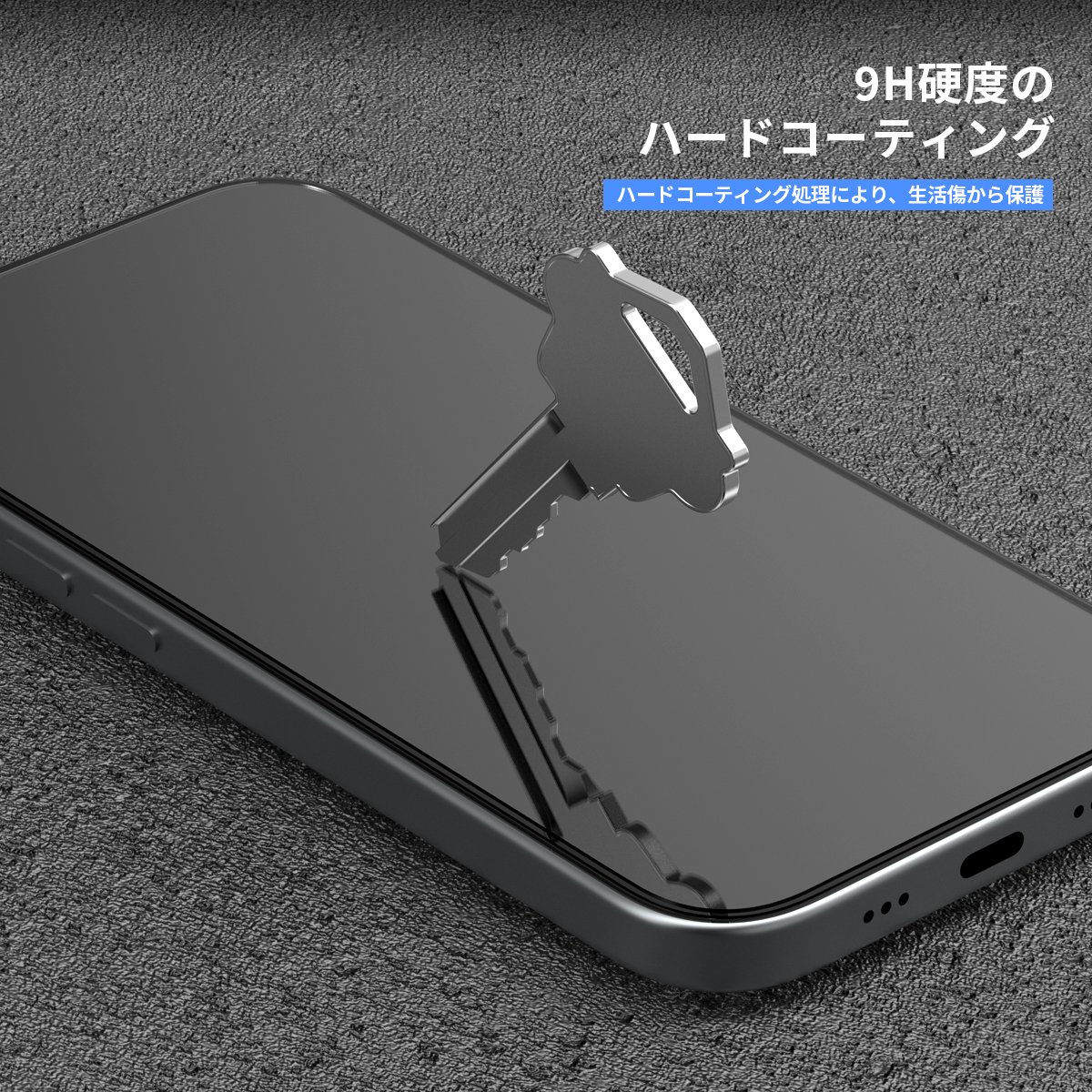 ハードコーティング処理により、生活傷から保護します。鍵や鉛筆など鋭利なものでも傷がつかないほどの硬度を実現しました。