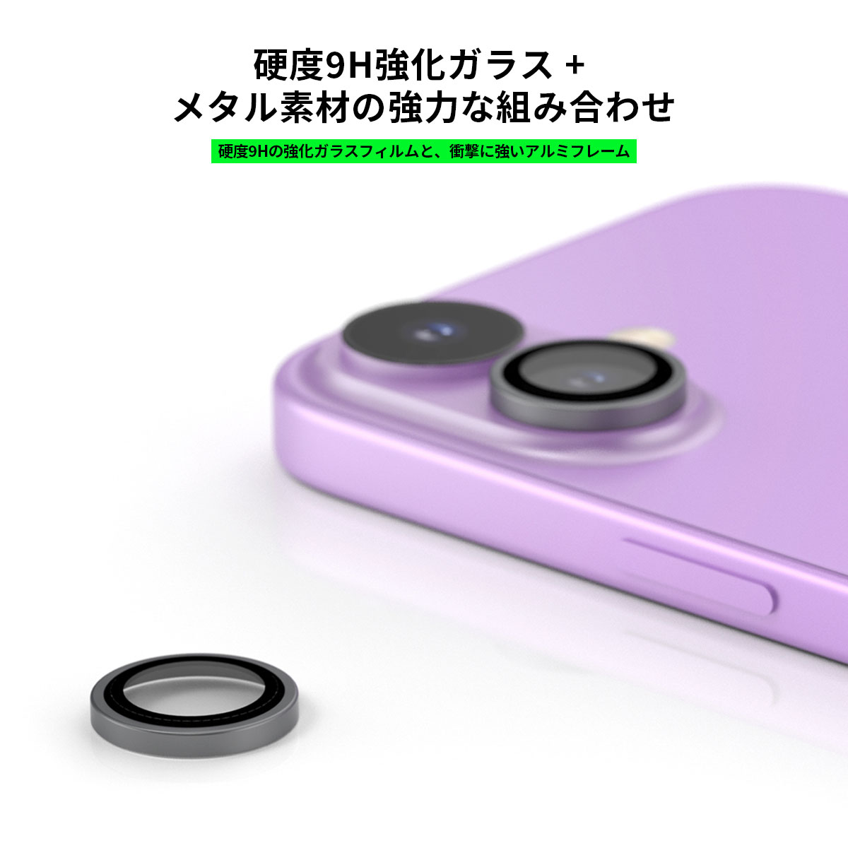 接着層・アルミニウムフレーム・9H硬度強化ガラス層・反射防止ブラックリングの4重レイヤーで、安全に長く使えます。