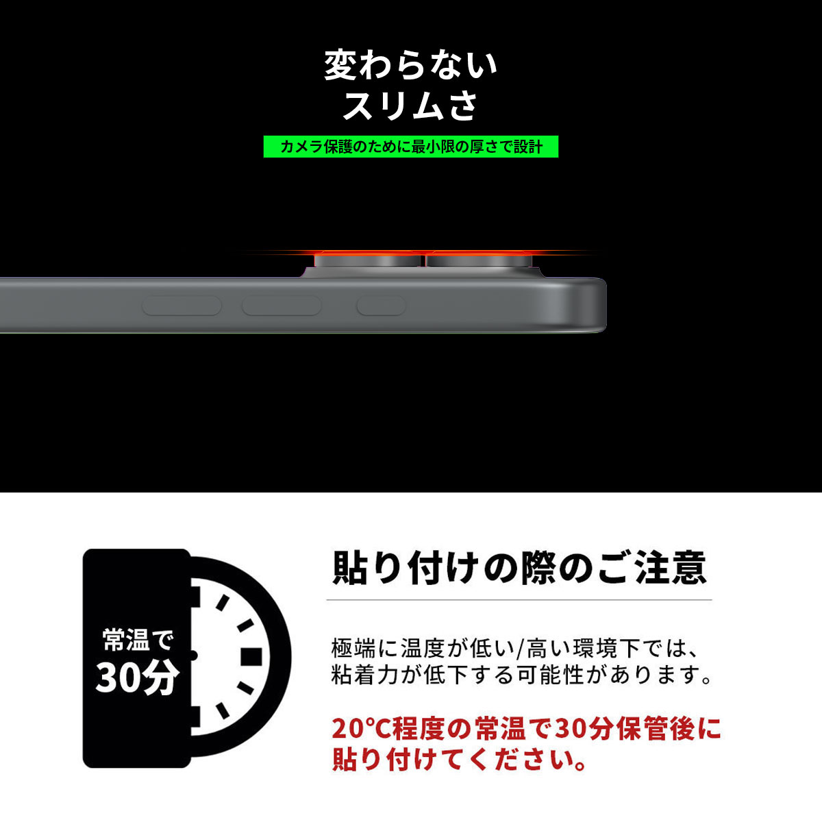 カメラ保護のために最小限の厚さで設計されており、装着後も違和感のない元のスリムさを保ちます。